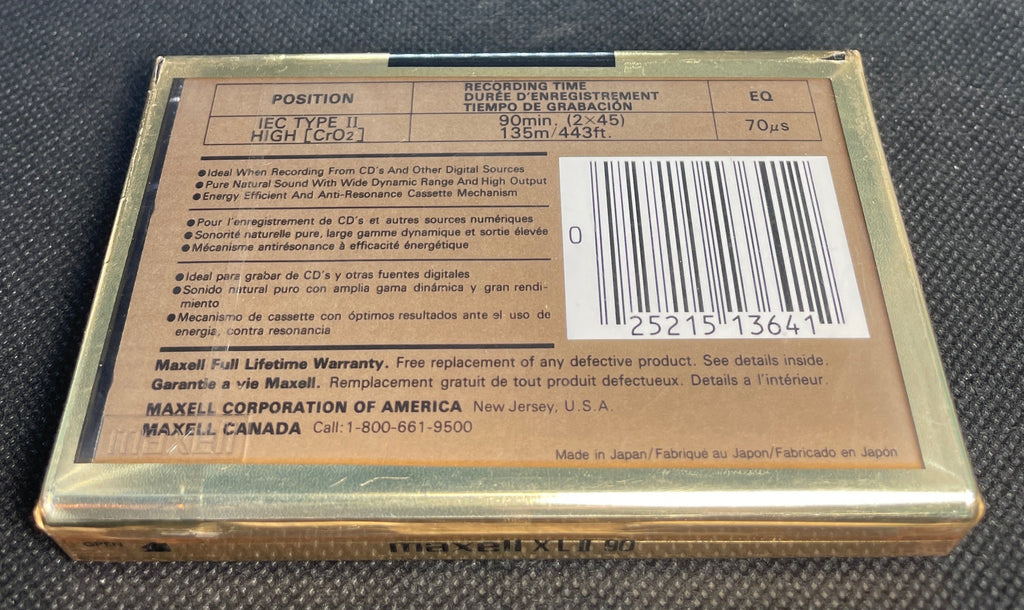 Note 5: 100 Minutes: B-Grade: 4 Tapes available. Even better than the B-Grade 90 Minutes tapes above. These only have small wrapper blemishes, no visible cracks of any kind. Again, not worth taking pictures of these nearly perfect tapes. Take a chance, and you'll be glad. The last C100 tape to be given out has the rarer white "maxell" letters on the spine of the cassette.