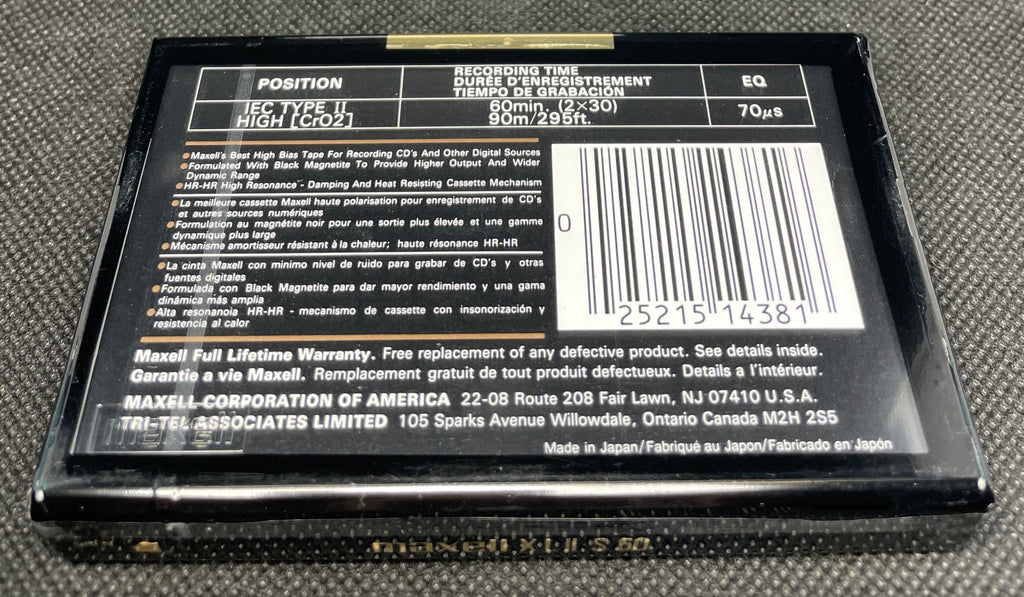 This 1992 run of XLII-S tape has two (2) significant variants. One has black "maxell" letters on the front, while the apparently scarcer variant, has white "maxell" letters. See picture below: