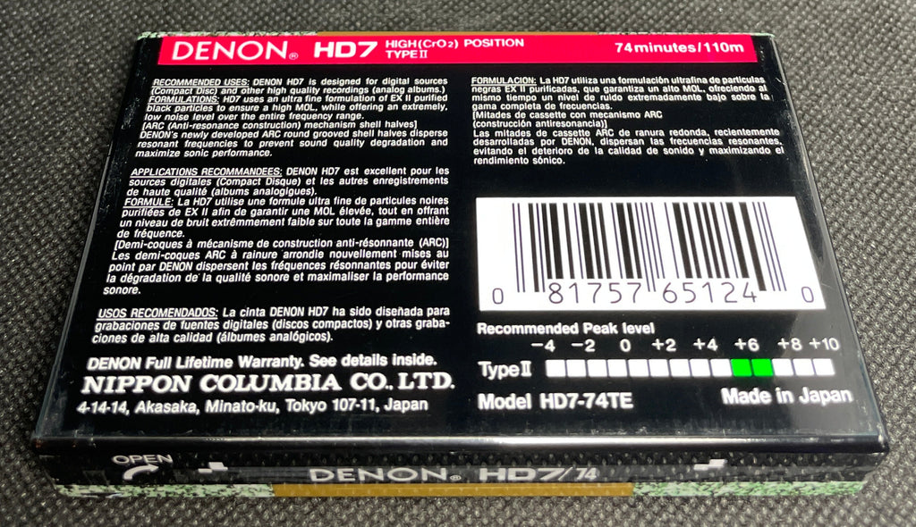 "Denon are currently also the most consistently expensive blank Cassette brand out there (...) Very little needs to be done to this cassette to make it sound great (...) the shell is one of the best ever (design), with the big window and the smaller one just above it (...)" Tony Villa
