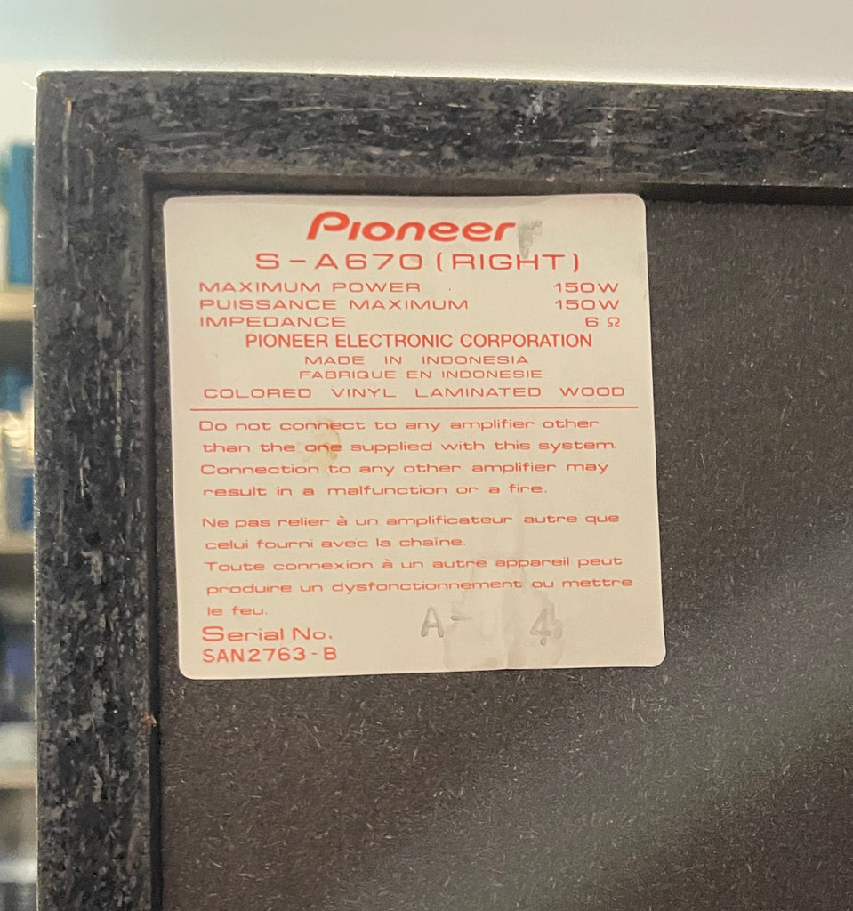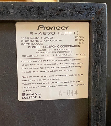 Pioneer S-A670 Speakers - 2001 - Made in Indonesia