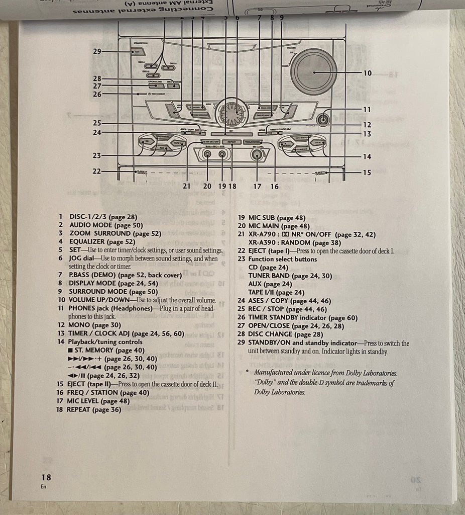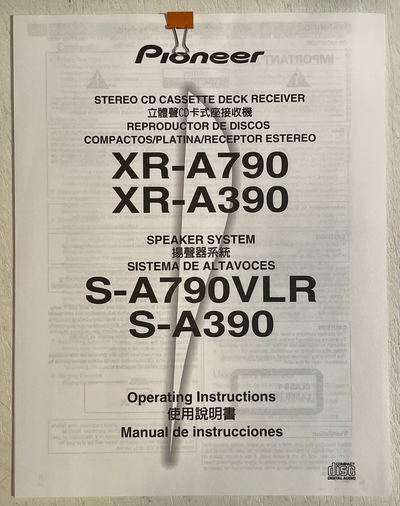 Owner's Manual: It comes with a sort of generic manual for an XR-A790 and a XR-A390 (very similar model number to that of this one, the XR-A3900). The XR-A390 was meant for Japan and Asia, whereas the the XR-A3900 was meant for North America and probably most of the American continent)