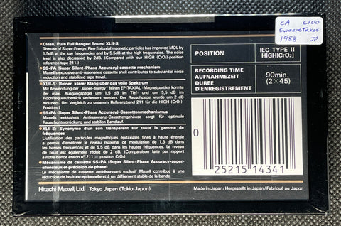 Note 6: 90 Mins: CA: This cassette is made in Japan for the Canadian market. Notice the "Maxell Super Sweepstakes" Black seal on the front side. Low inventory. You may get a lightly scuffed wrapper. No rips, no cuts.