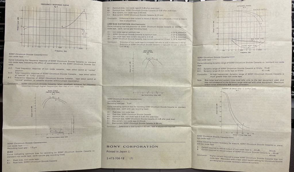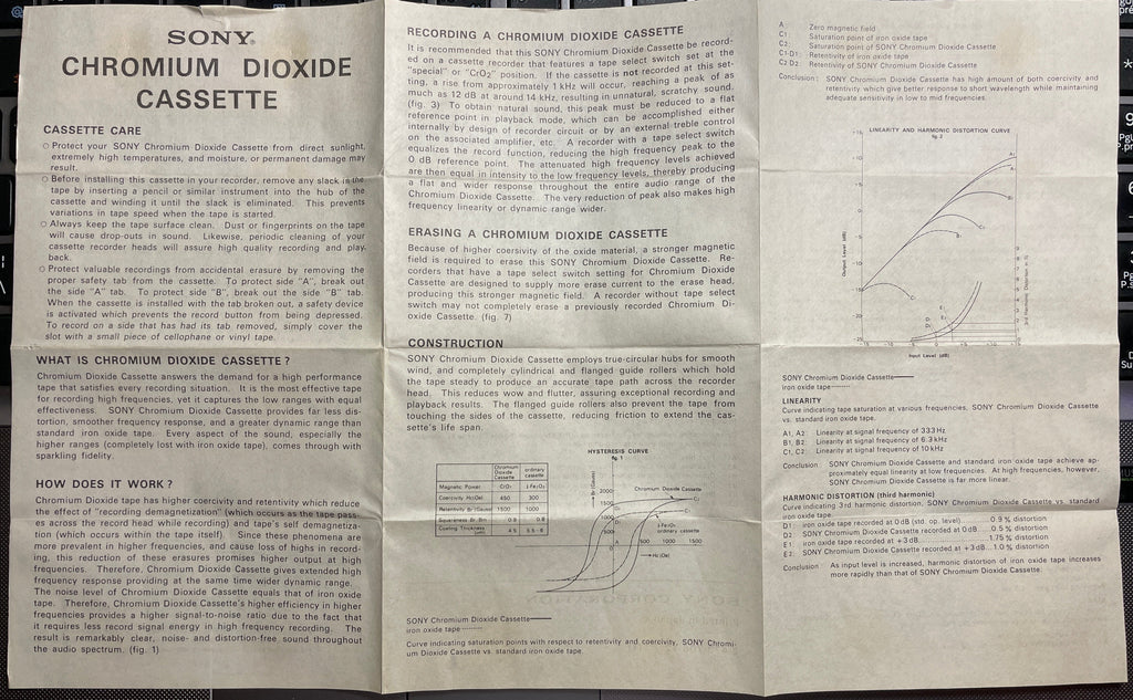 Note 2: 90+2 Mins: 100% new tape, looks really good (see pics). Wrapper is long gone. I will be inserting it in a tight plastic bag, after ensuring that it is clean to avoid any other elements enter its realm. It comes with this unreal pamphlet, which is probably much rarer than the tape itself. A pamphlet describing all about chrome tapes and the advantages of using them over the ferrics of the time, early 70's. Only 1 available.